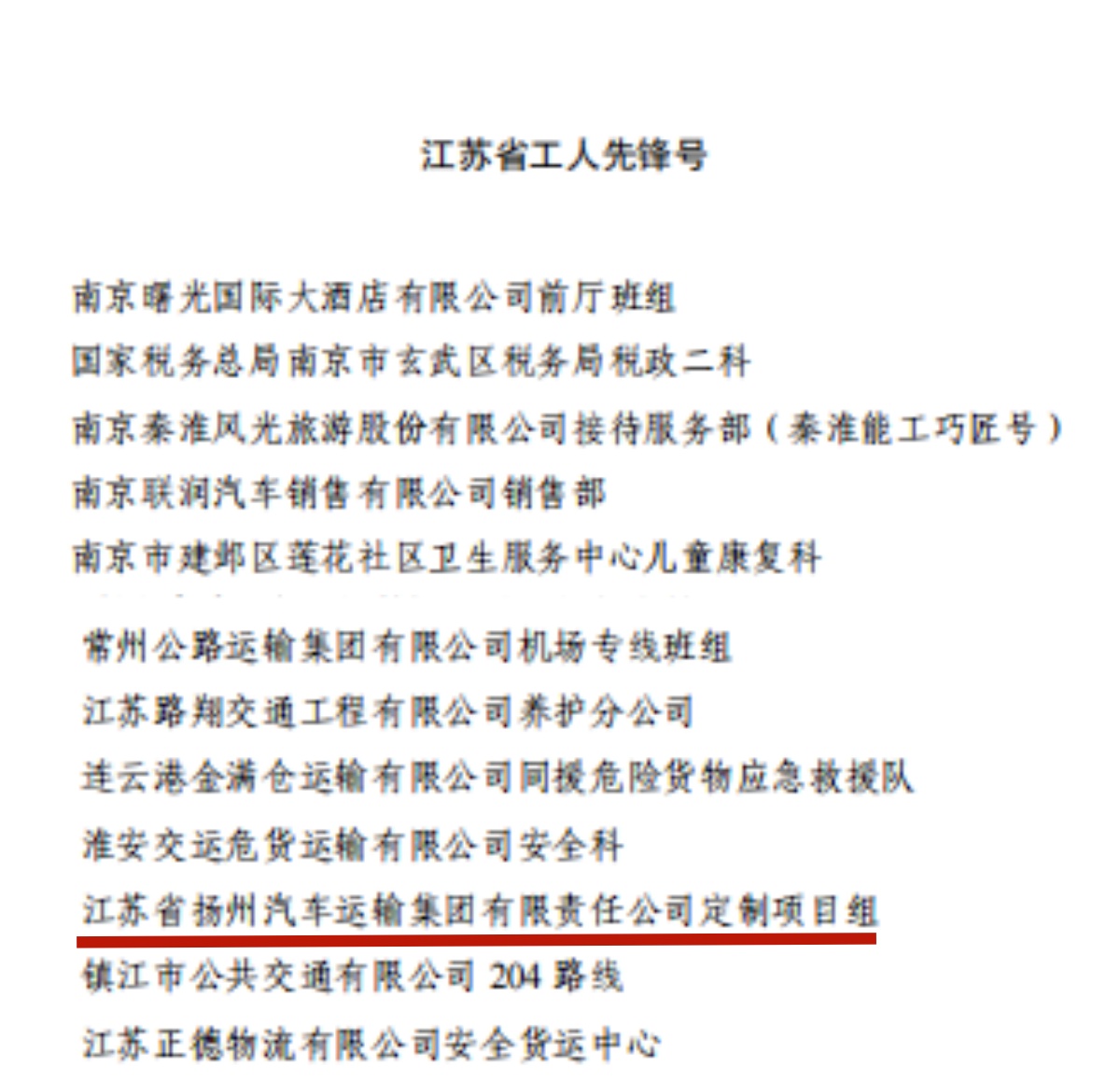 揚汽集團定制專線項目組榮獲江蘇省“工人先鋒號”稱號